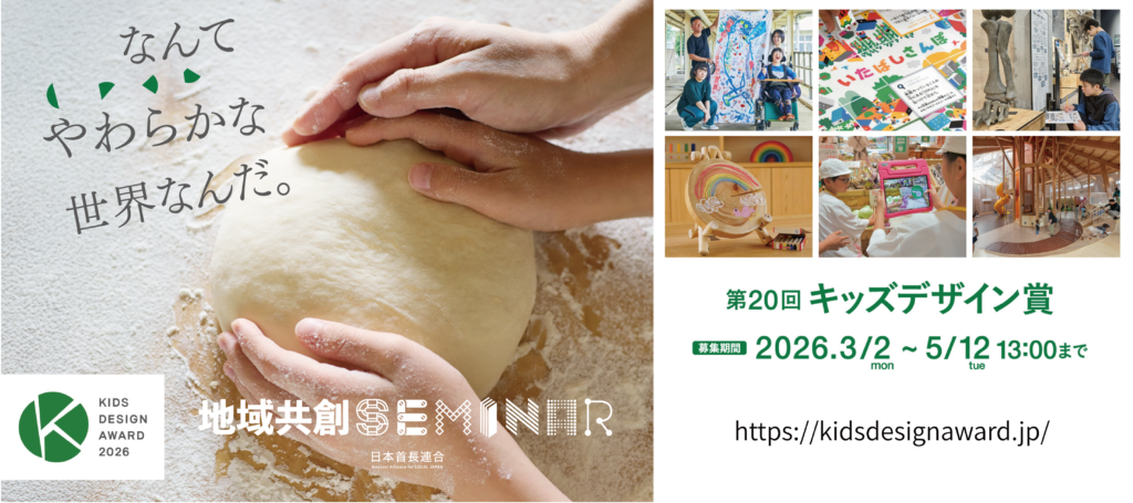 子どもが幸福を感じられる社会・環境を表彰する「キッズデザイン賞」は、子育てのしやすい自治体であるという魅力創出に寄与するものであり、セミナーでは自治体で受賞された例を紹介していただく予定です。